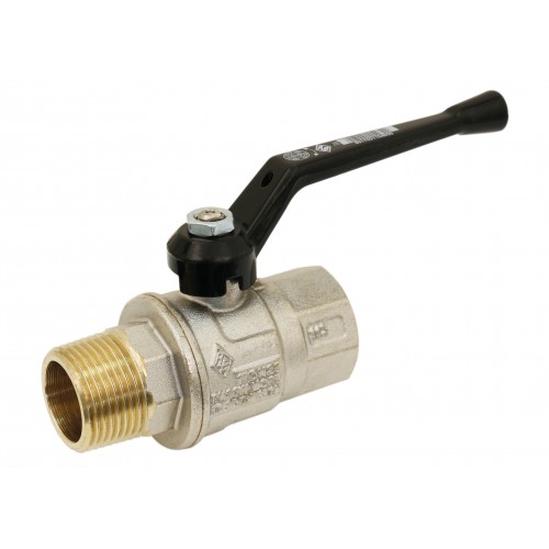 Brass ball valve - M/F - Long threaded series - Full bore - Black aluminium handle