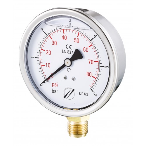 Industrial Pressure gauge - Stainless steel casing - Class 1.6 - Brass radial fitting 1/2''G - Ø 100 - Glycerine