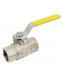 Vanne à sphère laiton F / F - Série Gaz - Poignée acier jaune