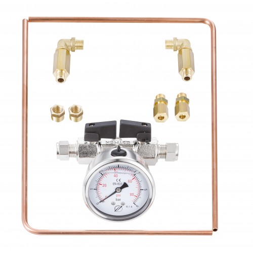 2 robinets 1/4 tour avec purge et raccord pour tube Ø4 et Ø6.