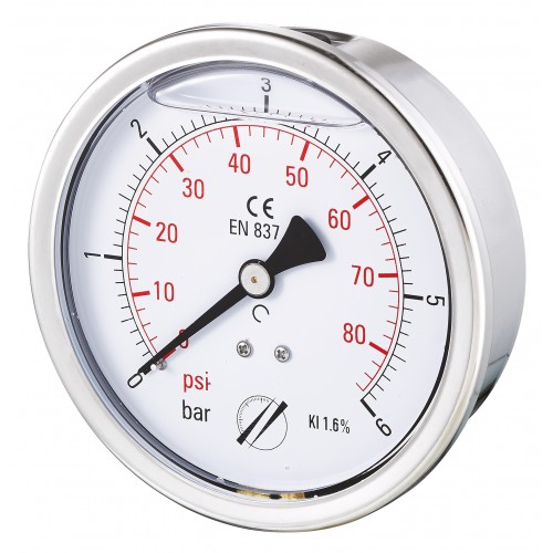 Manomètre industriel - Boitier inox - Classe 1.6 - Raccord axial 1/2G Laiton - Ø 100 - Glycérine