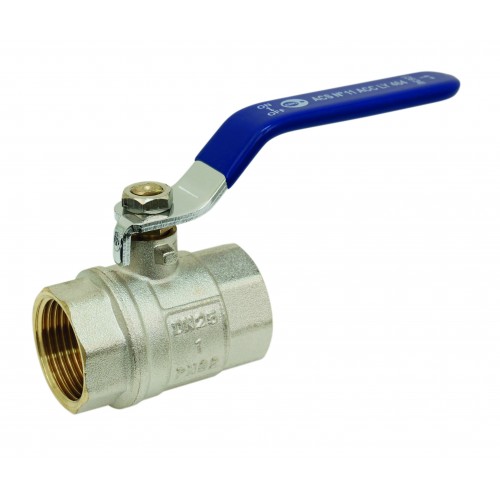 Vanne à sphère laiton F / F - Série Alpine - Passage intégral - Poignée acier plate bleue