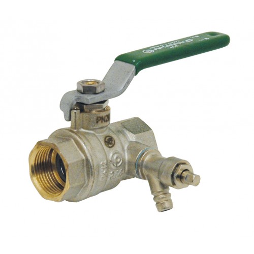 Vanne à sphère laiton F/F à purge - Série NF - Poignée acier plate verte