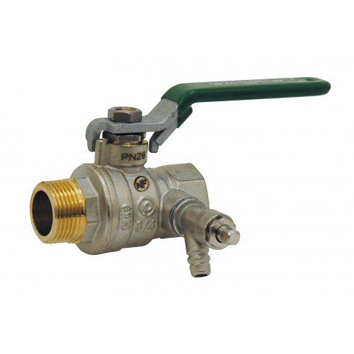 Vanne à sphère laiton M/F à purge - Série NF - Poignée acier plate verte