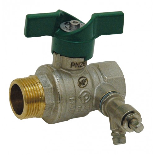 Vanne à sphère laiton M/F à purge - Série NF - Poignée papillon aluminium verte